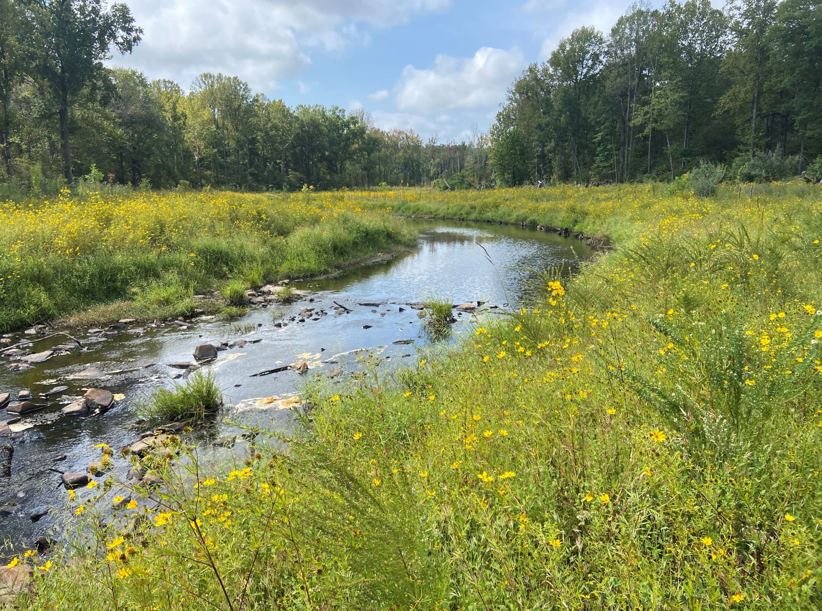 Stream restoration plays a critical role in protecting aquatic life by restoring the natural structure and function of stream channels. Stabilized banks, improved flow patterns, and reduced sediment help create healthier habitats for fish and other aquatic organisms. By slowing stormwater, reconnecting streams to their floodplains, and reestablishing native vegetation, restored streams provide cleaner water, improved oxygen levels, and more stable conditions that support diverse and resilient aquatic communities over the long term.Natural Stream Design