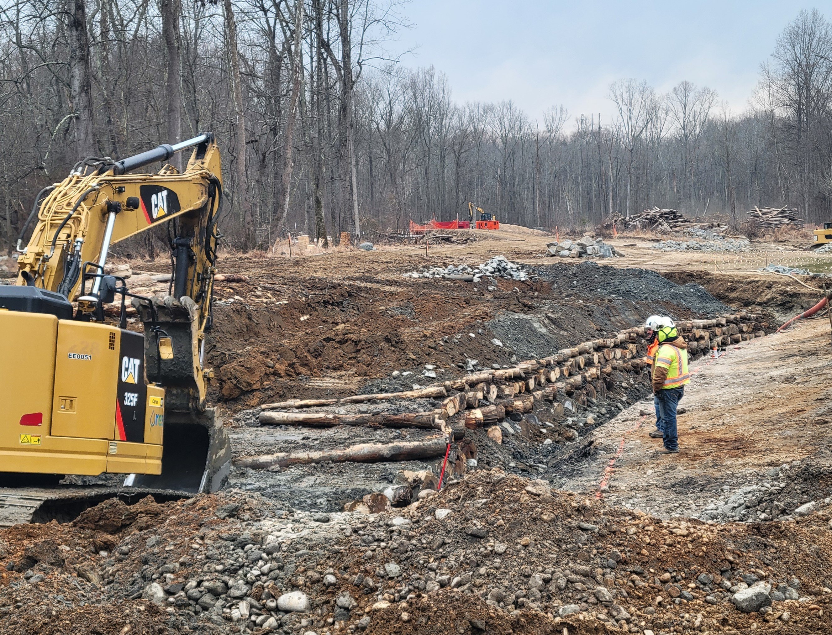 While we do our best to avoid unnecessary tree clearing, it may be required for certain projects. To increase sustainability, materials cleared on site are reused to build engineered structures for aquatic habitats and stream bank erosion control.