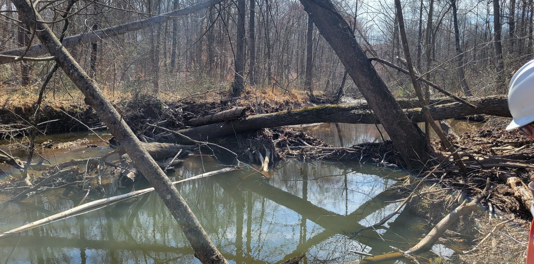 Prince William County uses natural stream design techniques that mimic how healthy streams function in nature. These projects use natural materials—such as logs, rocks, and woody debris—to stabilize channels and improve habitat.